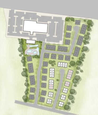 The lower level of the duplexes are combined with a large scale pocket door the spans the width of the dining room, creating one large space for families that choose to combine the two units.